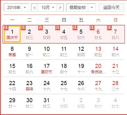 10月1日至10月7放假調(diào)休,共7天,10月8日上班。