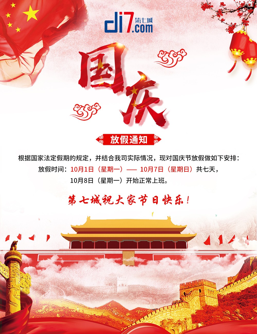 根據(jù)《國務院辦公廳關于2018年部分節(jié)假日安排的通知》結(jié)合本公司實際情況,我司國慶放假安排如下: